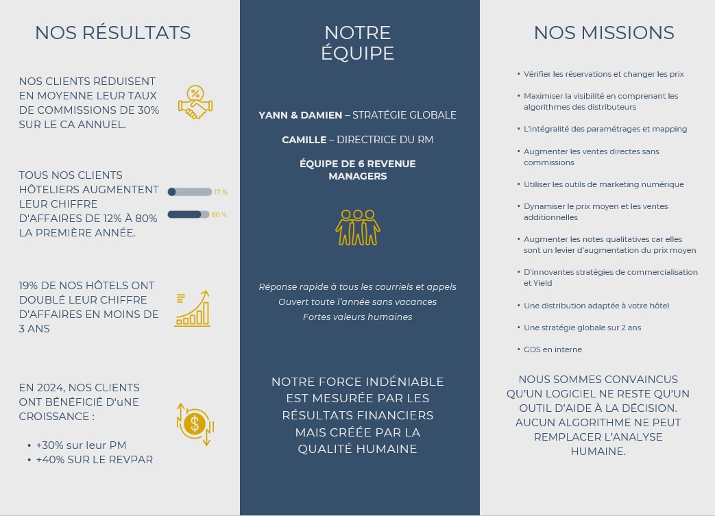 Notre mission : Accompagnateurs de la performance hôtelière, optimisons vos revenus ensemble !