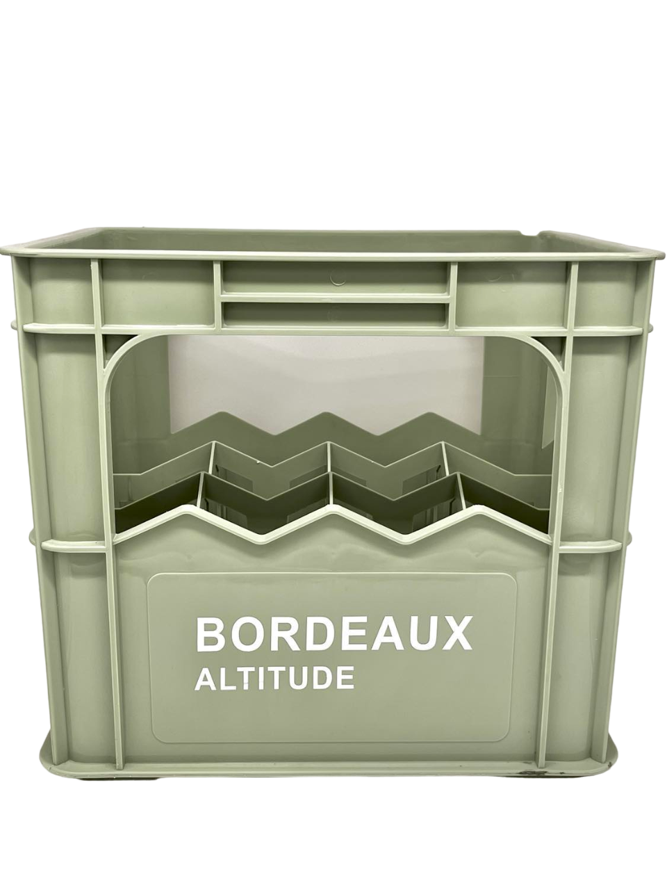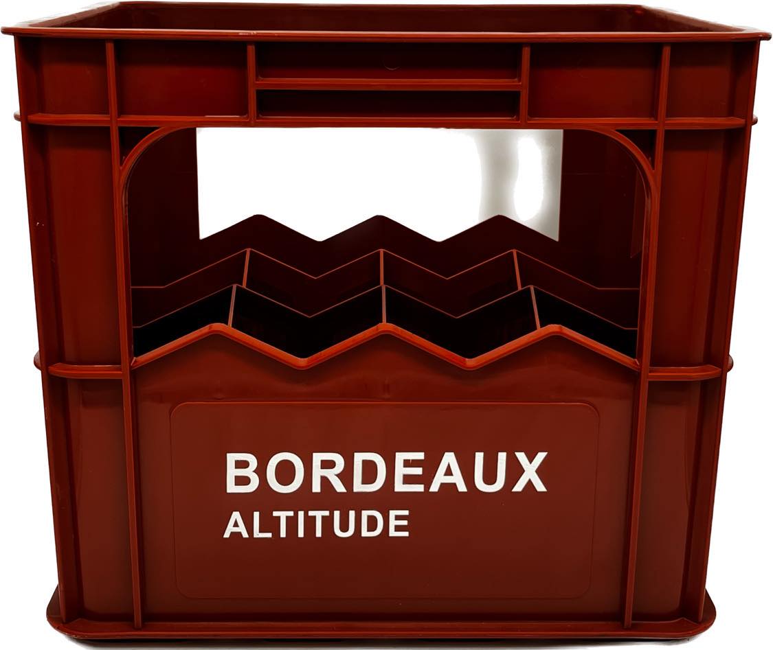 Bordeaux Altitude, la première gamme de vins de Bordeaux en bouteilles consignées et sérigraphiées, sans étiquette ni capsule, 100 % réemployable.