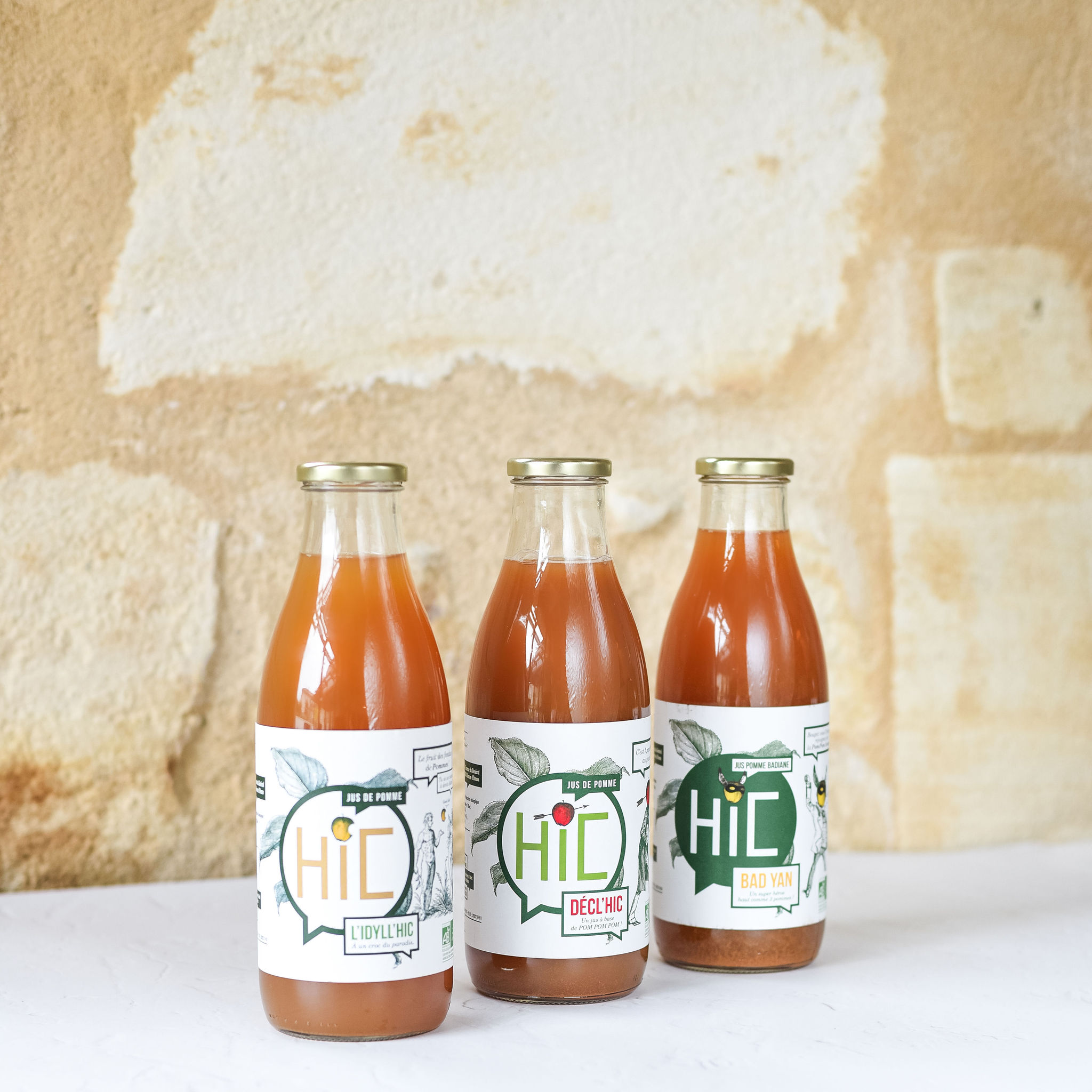 HIC, c'est l'histoire de 2 normands pur beurre qui travaillent la pomme avec le coeur à Sadirac en Entre-Deux-Mers pour produire des cidres, jus, vinaigres, purées, farine et gelées de pommes dans une démarche d'économie circulaire 0 déchets en valorisant les partenariats locaux et l'inclusion sociale.