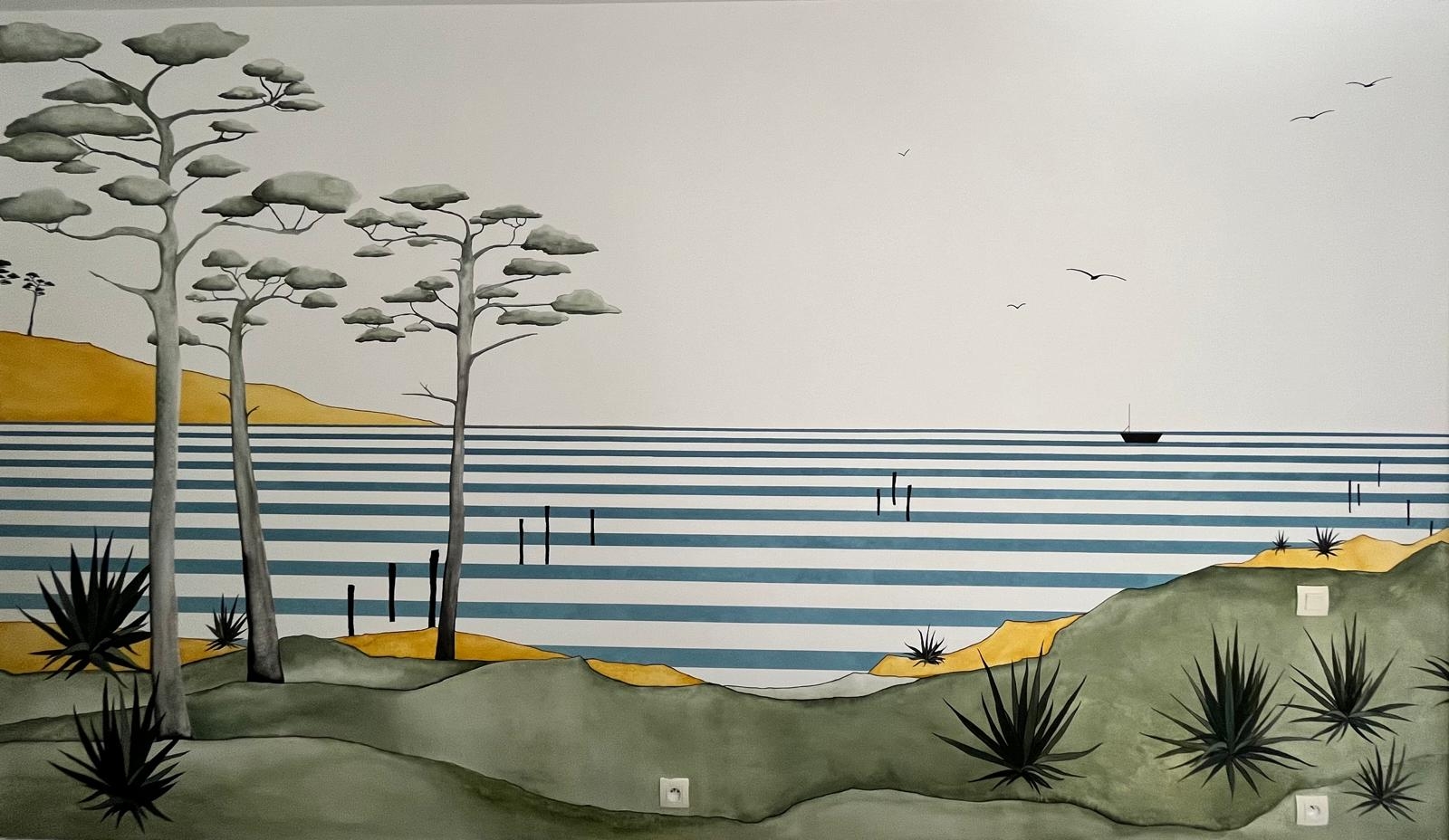 GRAFFITO, atelier d'art mural en Gironde, est une entreprise d'artisanat d'art créée par deux peintres en décor. Nous sommes spécialisées dans la création de décors peints et de papier-peint haut de gamme, dans une approche sur-mesure, pour vous accompagner dans la création d'une ambiance personnalisée, pour un impact fort sur l'expérience client. Nous travaillons avec des matières naturelles, et un papier peint en fibres et textiles recyclés. Notre approche repose sur la stylisation d'inspirations multiples issues des arts décoratifs, conjuguant le travail de la matière naturelle brute et les techniques picturales.