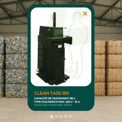 Le CLEAN TASS s’installe dans le local poubelles ou vous venez glisser la poubelle dessous une fois remplis. Une simple pression sur le bouton lance une séquence de compression : le piston descend pour tasser les déchets et réduire le volume des sacs.
